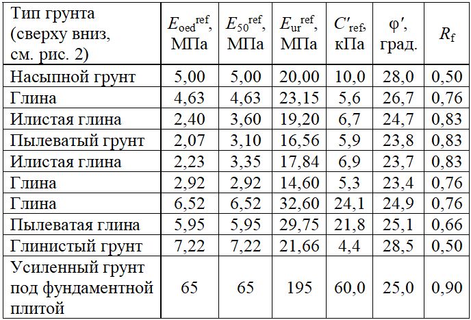 Таблица. Параметры грунтов