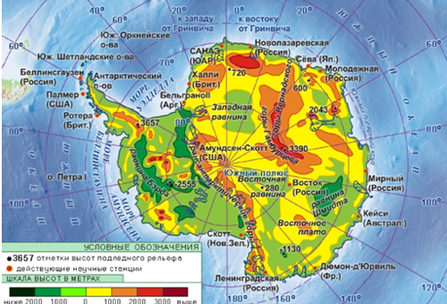 Рис. 9. Карта коренного (подледного) рельефа Антарктиды [4]