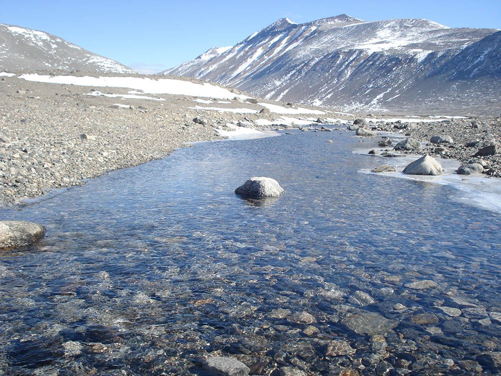 Благодаря интенсивной солнечной радиации в летнее время происходит таяние ледников не только вблизи побережья, но иногда и довольно далеко от него (даже при незначительной отрицательной температуре воздуха), особенно рядом с нагревающимся на солнце каменистым грунтом, выступающим надо льдом. Возникающие наледниковые ручьи и речки длиной обычно не более нескольких километров соединяют многочисленные наледниковые озера. Иногда водотоки прокладывают часть своего пути подо льдом и могут быть опасны для вездеходов и людей. Иногда часть своего пути они текут по сухим долинам.