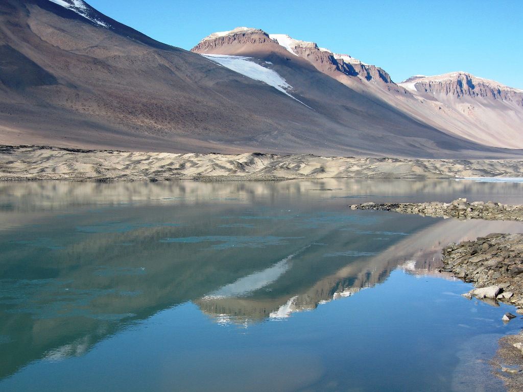 Другие поверхностные антарктические озера также очень своеобразны. Они тоже невелики. Наиболее крупное из них – Фигурное – тянется на 20 км, занимает площадь 14,7 кв. км и имеет глубину более 130 м. А самое глубокое (до 362 м) – озеро Радок. Располагаются такие водоемы в сухих долинах или в температурных оазисах и основную часть года покрыты толстым слоем льда. Но в летний антарктический период лед вдоль их берегов, а иногда и полностью, тает. Воды таких озер часто стратифицированы (как и у Ванды), то есть у дна наблюдается слой воды с повышенной температурой и соленостью. Иногда (при отсутствии стока) концентрация соли в них настолько высока, что они могут быть полностью свободными ото льда значительную часть года, например озеро Дон-Жуан.