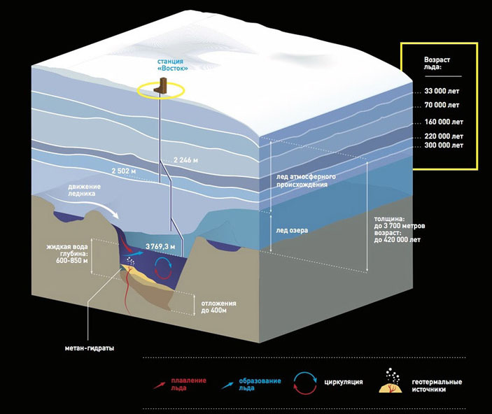 Рис. 17. Подледниковое озеро Восток. Схематическое изображение [12]