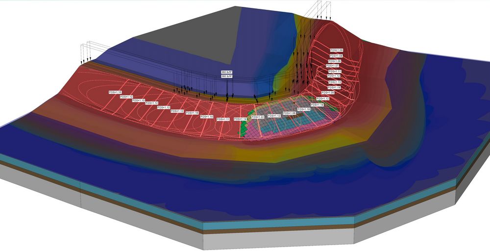 В результате, если вы проведете обратный анализ с использованием 2D, а затем попытаетесь выполнить прямой анализ с использованием 3D, вы переоцените коэффициент устойчивости откоса, что приведет к опасному состоянию последнего. Инженер всегда должен использовать для обратного анализа 3D, чтобы точно определить прочностные свойства материала.