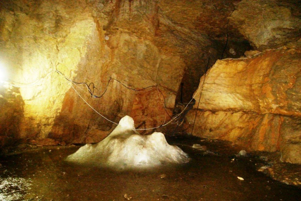 Рис. 9. Залежи ископаемого льда в крымской пещере «Трехглазая». Фото с электронного ресурса (https://www.7ways.com.ua/docs/about/emine-bair-koba-trehglazka-cave-krym.html)