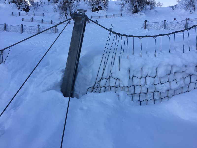 В качестве примера можно привести ситуацию, которая складывается в настоящее время на известнейшем российском горнолыжном курорте. Многочисленные фотографии развалившихся снегоудерживающих барьеров характеризуют масштаб проблемы. Практически все конструкции за несколько сезонов оказались просто уничтожены: опоры лежат, анкеры фундаментов погнуты, сетка порвана. На эти сооружения (с учетом монтажа) были потрачены десятки миллионов рублей. Более того, подобные сооружения просто не обеспечивают защиту людей, находящихся на склонах, создавая у посетителей, владельцев и менеджеров курорта крайне опасное ложное чувство безопасности.