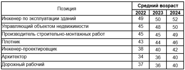 Молодых инженеров мало. По данным SuperJob, в 2022 году средний возраст инженера-проектировщика составлял 38 лет, в 2024 году – 42 года.