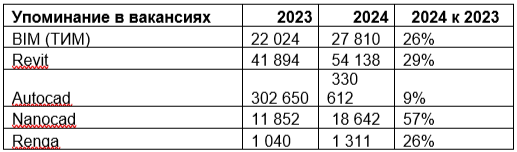 Потребность в BIM-специалистах выросла в 2024 году на 5% относительно 2023 года и на 186% относительно 2020 года.
