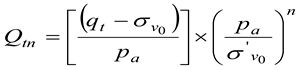 n — показатель степени, непосредственно связанный с типом грунта по SBT;