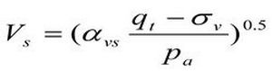 Из допущения связи боковых сопротивлений и сопротивления перемятого грунта прямому срезу в недренированных условиях (Su (remolded) = fs) следует вывод о том, что приведённые значения указанного коэффициента могут быть определены из выражения: