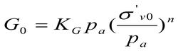 Общеизвестна зависимость модуля сдвига G0 от скорости поперечных волн Vs: