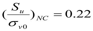 Для нормально консолидированных (NC) глинистых осадков коэффициент чистого прямого среза в недренированных условиях изменяется в пределах 0,2…0,3 при среднем значении 0,22 [7]:
