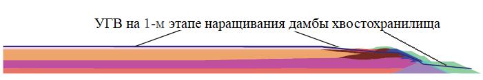 Рис. 4. Расположение уровня грунтовых вод (УГВ) на 1-м этапе наращивания дамбы E-F