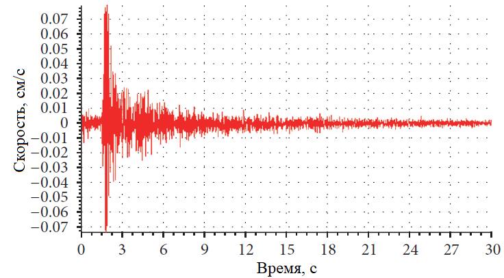 Рис. 10. Входные колебания грунта при землетрясении в штате Вирджиния США (экстремальном)