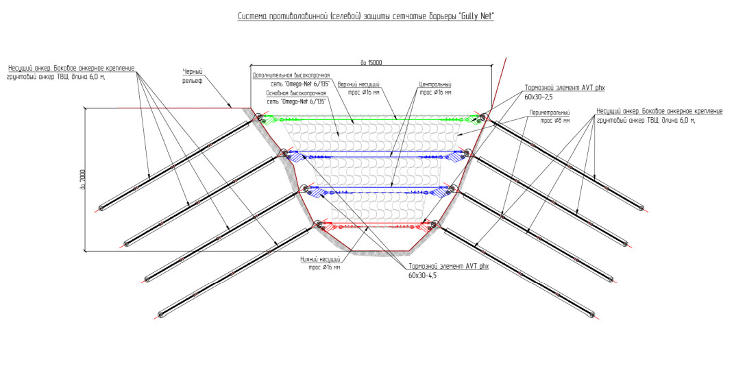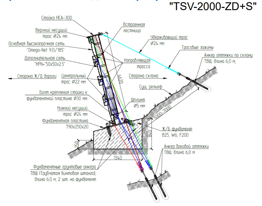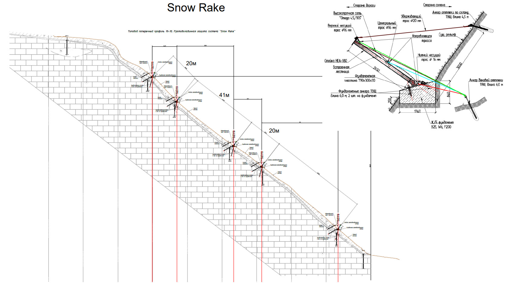 Затем А.А. Зайцев подробно рассказал участникам секции о реализованном проекте, который стал визитной карточкой компании ТРУМЕР в нашей стране. В частности, он отметил, что от схода лавин установлено 940 м (33 ряда) снегоудерживающих барьеров Snow Rake DK 2.5, состоящих из металлических каркасов в виде ряда металлических стоек, системы тросов и высокопрочной металлической сети. Крепление к грунту стоек и тросов – анкерное. А сами конструкции имеют «парусообразный» вид, необходимый для равномерного рассеивания энергии воздействия снежных масс.