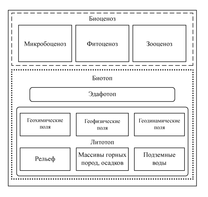 Рис. 2. Модель состава природной сухопутной (континентальной) эколого-геологической системы [3]
