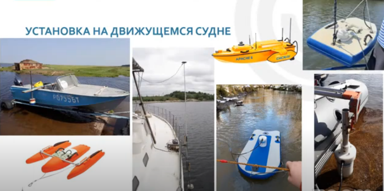 В качестве плавсредств для сбора информации на реках используются лодки с подвесным мотором, небольшие яхты, буксируемые плоты. На них крепится акустический прибор.