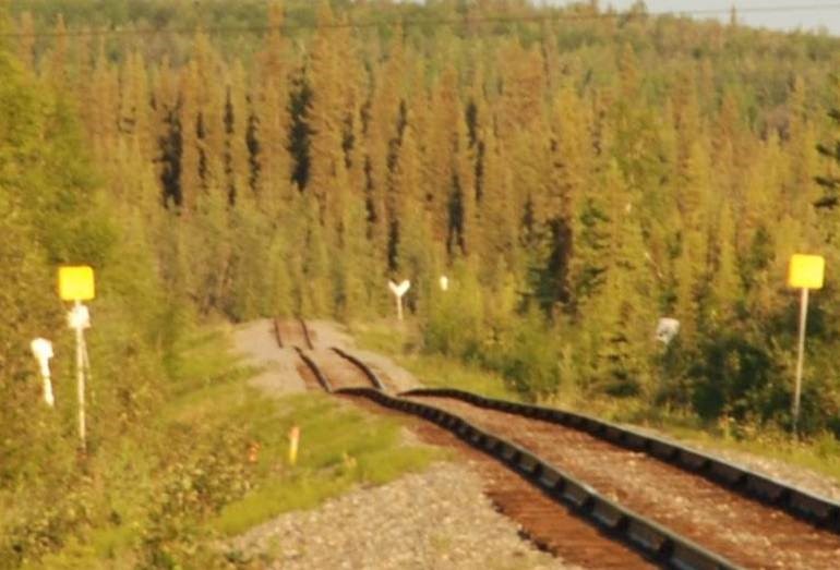 Рис. 11. Деформация полотна Аляскинской железной дороги при таянии подземных льдов [3]