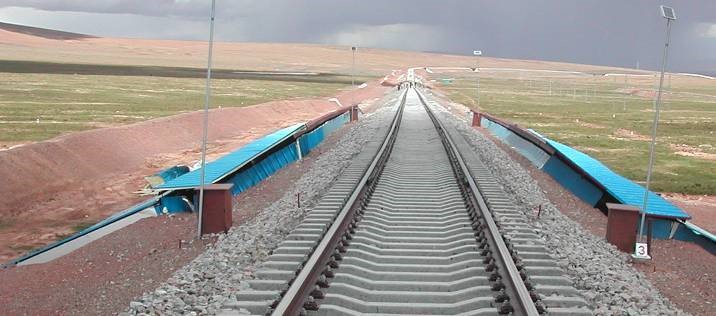 Но особый интерес представляет уникальная железная дорога Цинхай-Тибет, имеющая длину 1956 км, особенно строительство ее участка длиной 815 км между Синином и Голмудом, значительная часть которого, 550 км, проложено по территории развития прерывистых ММП со средней годовой температурой грунта от 0 до -1 °С.