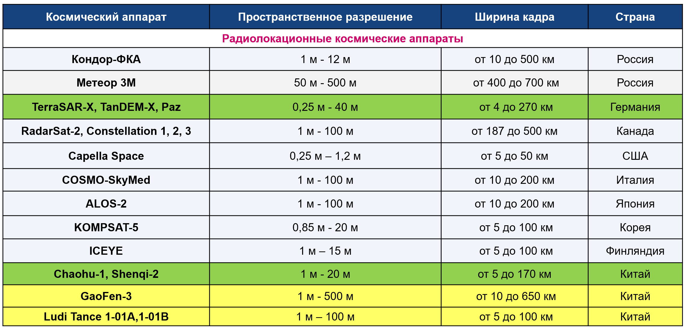 Рис. 3. Основные космические ДДЗ. Из презентации С. Канюкова