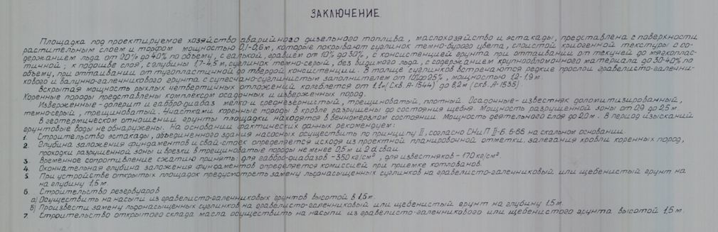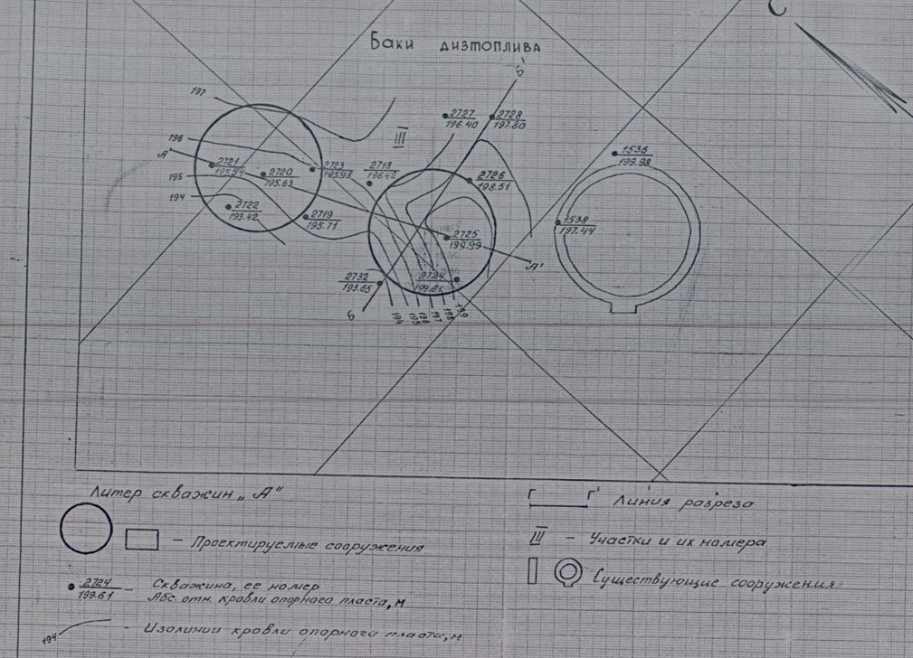 Заказчиком были переданы имеющиеся в наличии фондовые материалы разных стадий реализации проекта строительства и эксплуатации резервуара, с комментарием, что часть документов отсутствует и будет запрошена в фондах и архивах.