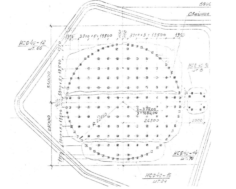Свайное поле было сформировано сваями НСФ40-12 (66 шт.), 14 (70 шт.), 16 (24 шт.) длинной от 12 м до 14 м, врезанными в коренные породы через выветрелую зону более чем на несколько метров.