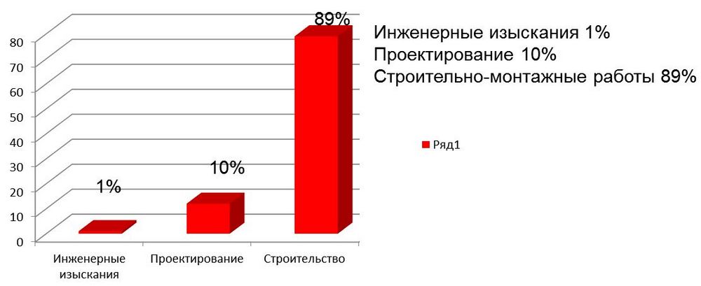 Очевидно, что стоимость инженерных изысканий ничтожно мала в сравнении с затратами на проектирование и строительство объекта. Стоит подчеркнуть, что в один процент включен полный комплекс инженерных изысканий, следовательно, стоимость инженерно-экологических изысканий, как правило, составляет лишь десятую, а то и сотую часть процента.