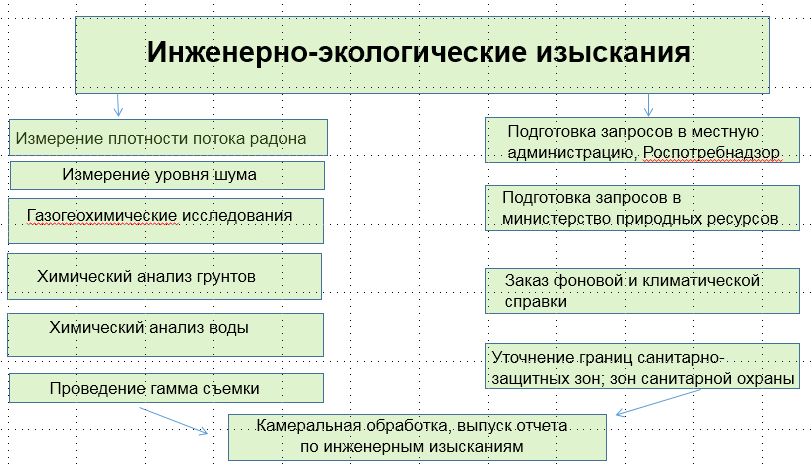 Рис. 2. Основные виды работ в составе инженерно-экологических изысканий
