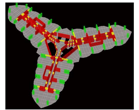 Рис. 5. Трехмерная аналитическая модель одного из этажей здания «Бурдж-Халифа» [7]