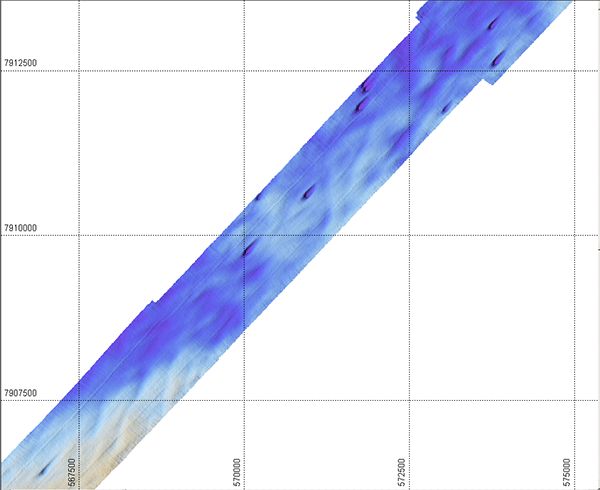 Рис. 5. Участок с преобладанием продолговатых депрессий на склоне Северо-Канинской банки