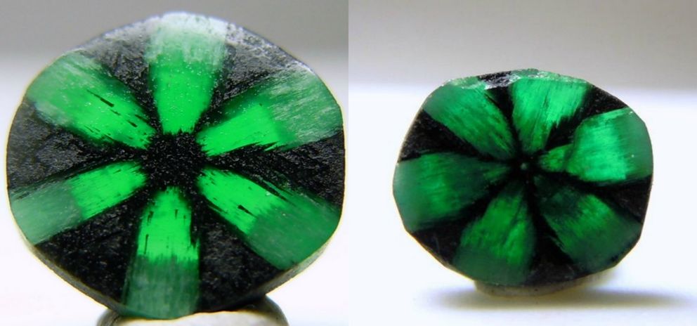 По составу этот драгоценный камень относится к берилловой группе, а свой атласный насыщенно-зеленый цвет получил благодаря примесям хрома и ванадия [2]. Африканские изумруды слегка отличаются именно из-за другого химического состава: в них меньше ванадия, и в то же время присутствует еще и железо, придающее им голубоватый оттенок. Хром придает изумрудам их характерное сияние (рис. 8), и нарушает строгий порядок в кристаллической решетке изящными включениями, называемыми французским словом «жарден», то есть «сад». Эти включения особенно заметны в колумбийских изумрудах, в замбийских их меньше.