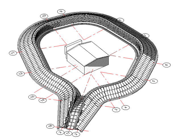 Сама дамба проектировалась с применением технологий информационного моделирования: подпорная стена из габионов сгенерирована в программе GEO5 Сборная стена (рис. 5).