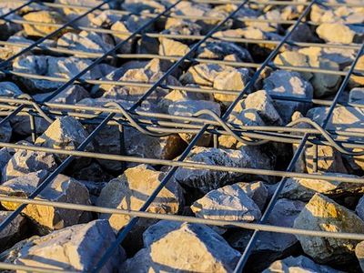 В настоящее время вместо плетеных корзин используются контейнеры из прочных металлических сеток различных размеров и форм. Их заполняют каменным материалом – карьерным камнем, щебнем, булыжниками, галькой и т.д. Размер камней должен быть больше диаметра ячеек сетки, но не должен превышать его более чем в 1,5–2 раза, чтобы камни, с одной стороны, не выпадали из оболочки, а с другой – чтобы между ними не было слишком больших пустот. Элементы наполнителя должны быть долговечными, тяжелыми, твердыми, прочными, морозоустойчивыми, иметь низкое водопоглощение и не терять прочности и твердости при насыщении водой. При этом чем более угловатыми будут камни, тем лучше будет блокировка и тем меньше будет деформирование габионных конструкций в процессе их работы.