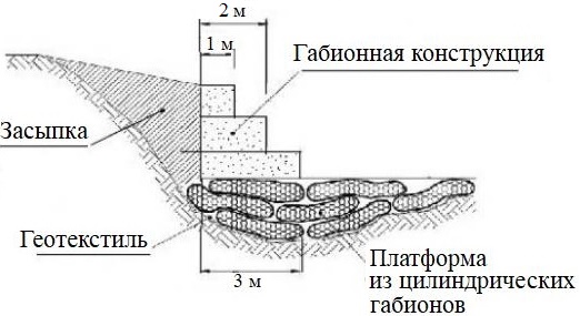 • относительная податливость, что значительно уменьшает возможность повреждения габионных конструкций при сезонных подвижках (самих конструкций, подстилающего их или удерживаемого ими грунта);
