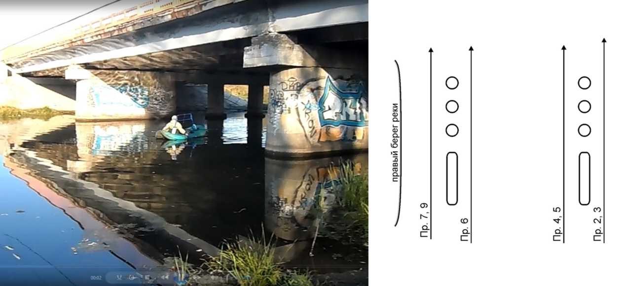 На рисунках 4 – 6 представлены материалы, иллюстрирующие обследование опор моста через реку на автодороге Р-239.