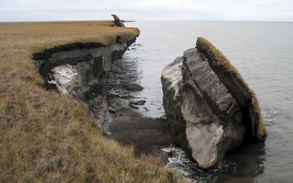 Рис. 6 Усиление береговой эрозии из-за деградации многолетней мерзлоты [58]
