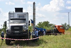 На испытательном полигоне клиенты увидели голландское оборудование в работе в составе установки статического зондирования УСЗ-20.ZBT новой модификации на базе грузового автомобиля УРАЛ NEXT. Из комфортабельного фургона-лаборатории при помощи современного задавливающего устройства собственного производства ЗБТ за 15 минут зонд был вдавлен в грунт на 19 метров.