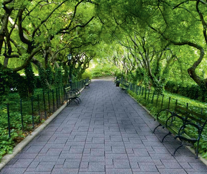Рис. 7. Дорожка, вымощенная водопроницаемым покрытием Porous Pave из переработанной старой резины, гранитного заполнителя и жидкого связующего [7]