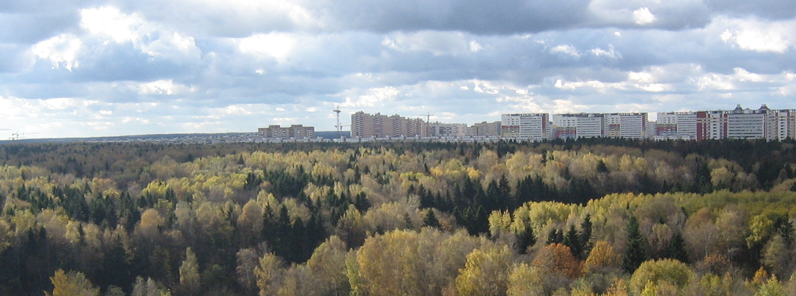 Рис. 15. Благоустроенный для прогулок лес в самом центре «Старого города» Зеленоградского административного округа города Москвы. Вид из окна жилого дома (автор фото: Аптикаева Г.Ф.)