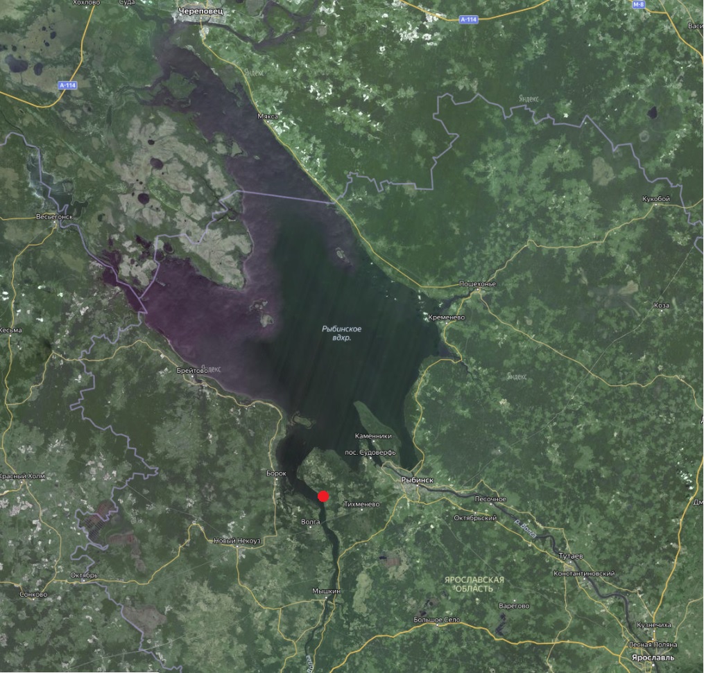 Рис. 1. Карта Рыбинского водохранилища: — местоположение участка исследований [10]