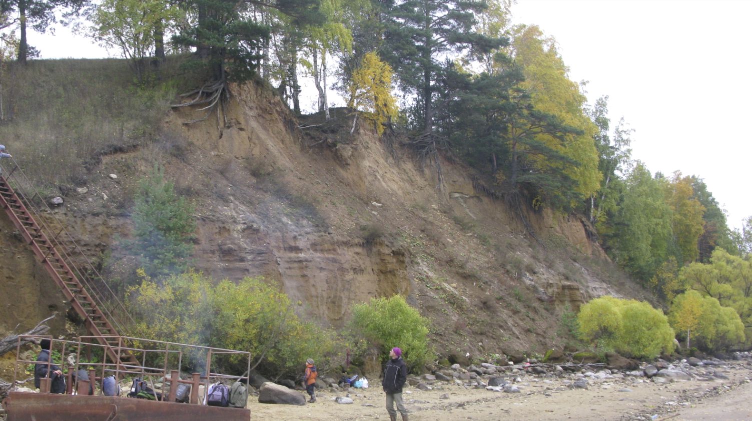Исследуемый участок берега относится к абразионному типу [5]. Река Волга в районе проведения работ течет на северо-запад. Изучаемый cклон имеет соответствующую ориентировку. Рассматриваемая территория включает в себя следующие геоморфологические элементы: пойму р. Волга, приводораздельный склон, а также приводораздельную поверхность.