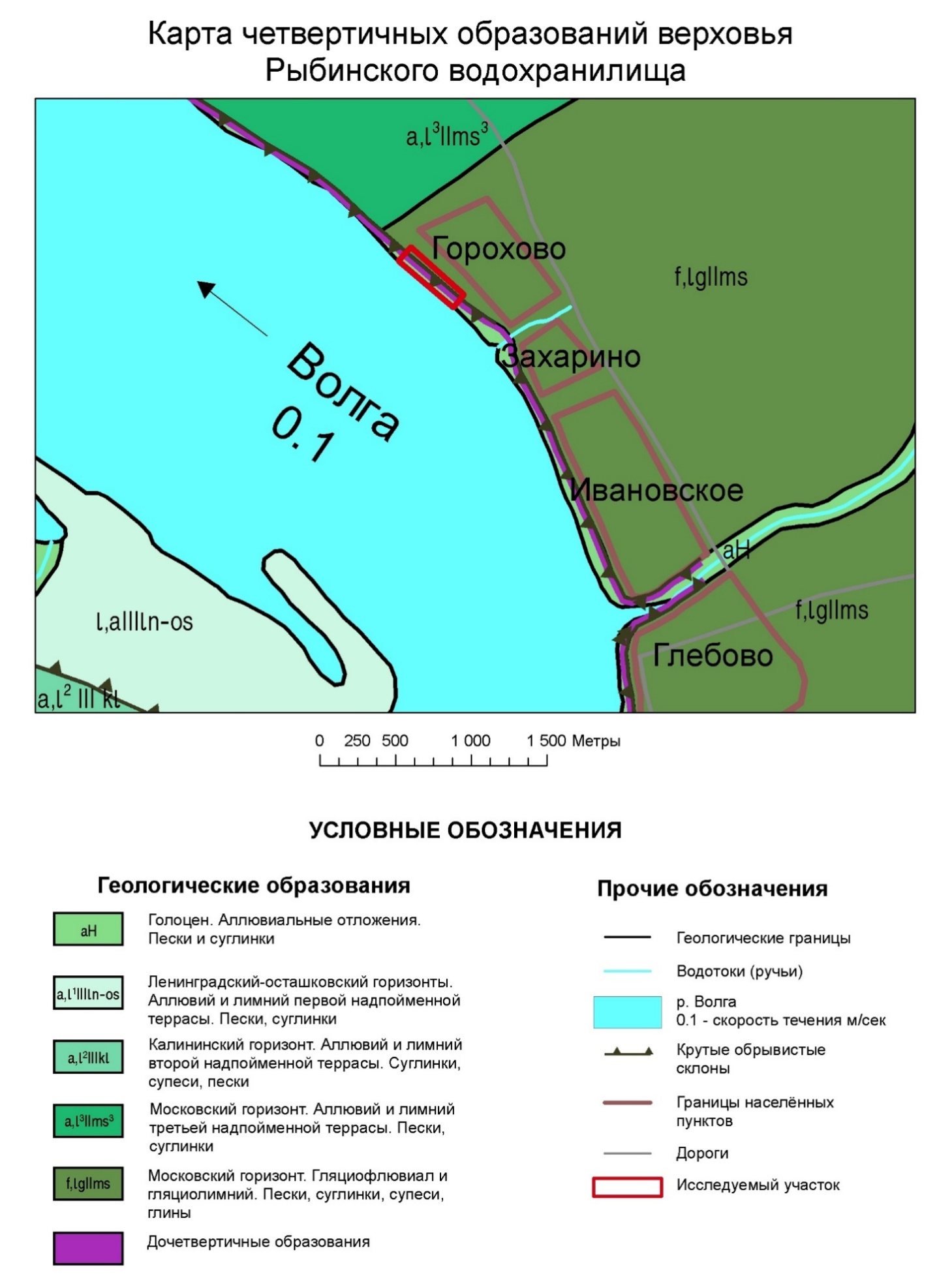 В настоящее время в средней полосе России Рыбинское водохранилище является одним из старейших и крупнейших. Согласно многочисленным прогнозам, переработка должна была на нём уже завершиться, однако в ходе проведённых исследований на участке в районе дер. Горохово было выявлено значительное количество проявлений склоновых процессов - на относительно небольшом участке, имеют место обвальные, обвально-оползневые, оползневые процессы, осыпание и процессы линейной эрозии. Участок представляет собой склон вдоль р. Волга высотой до 17 м, с выраженным трехъярусным геологическим строением. Сложен склон отложениями юрской, меловой и четвертичной систем.