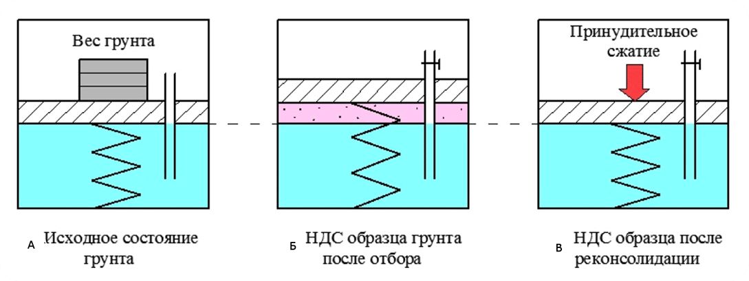 В настоящее время в арсенале изыскателей отсутствуют средства пробоотбора, исключающие изменение напряженного состояния монолита в процессе извлечения образцов на поверхность. Вместе с тем, возможность учесть это явление при подготовке образов для лабораторных испытаний существует, но об этом позже.