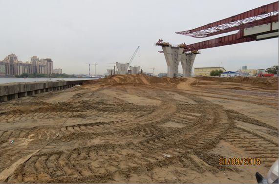 Рис. 3. Строительство автомагистрали «Западный скоростной диаметр» (ЗСД) на искусственной территории в Невской губе Финского залива Балтийского моря вблизи стадиона «Зенит»