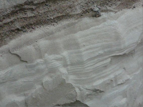 Рис. 4. Слоистая текстура песков, возникшая в результате фракционирования намывных песков и переноса пульпопроводов