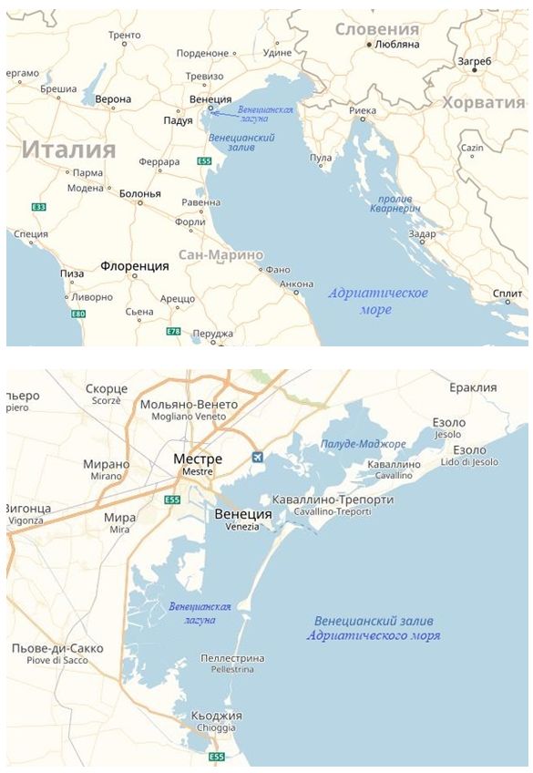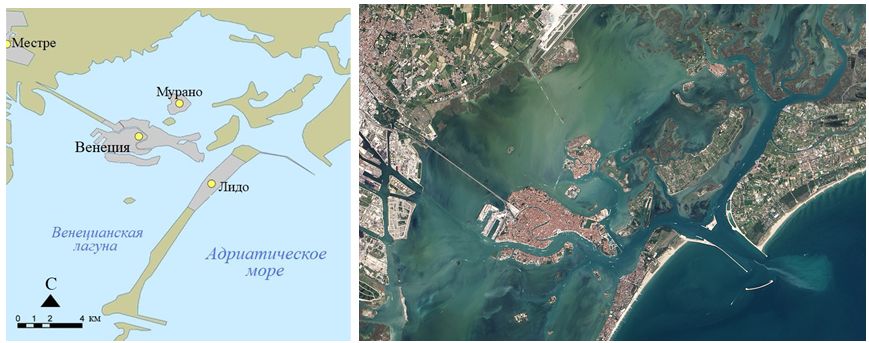 Венеция  всемирно известный город, считающийся жемчужиной Адриатики и мировой культуры. Он расположен на островах в мелководной Венецианской лагуне на северо-западе Венецианского залива Адриатического моря и является административным центром одноименных с ним области и провинции (рис. 1). Административно островная историческая часть Венеции в 1926 году была объединена с городом Местре, расположенном в континентальной части. Их суммарное население составляет около 262 тыс. человек.
