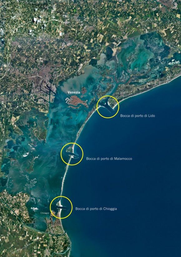 Однако не только природу следует винить в возникновении проблем города. Одними из главных причин ухудшения ситуации с наводнениями считают также искусственные изменения в лагуне и особенно в проливах между ней и морем. Ведь, поскольку при промышленном развитии территории на материке не хватало, происходило и активное освоение Венецианской лагуны с засыпкой соляных болот и отмелей и созданием на них промышленных зон. А сокращение общей площади водоема за счет его мелководной части, конечно же, привело к повышению уровня приливов.