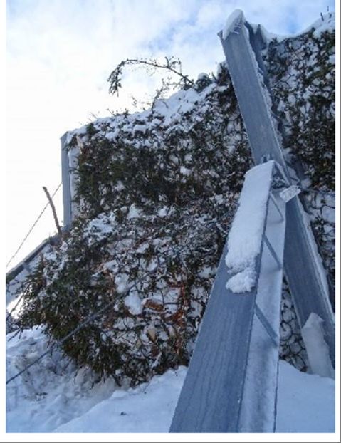 Рис. 6. Ветки со снегом, задержанные сеткой барьера при сходе лавины 14.01.2019 [4]