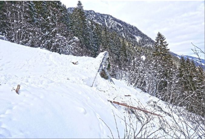 Для анализа эффективности новой меры защиты от небольших лавин в зонах транзита было необходимо выполнить полномасштабные полевые испытания. Для этого была выбрана обращенная на восток узкая зона транзита лавин в долине Штубай – примерно в 35 км от альпийского горнолыжного курортного города Инсбрук, являющегося столицей Тироля (западной федеральной провинции Австрии). Барьер Snowcatcher для испытаний расположили в легкодоступном месте рядом с лесной дорогой поперек указанной зоны транзита на высоте 1300 м над уровнем моря (рис. 3). Зона зарождения сходящих здесь лавин находится между 2000 и 2400 м над уровнем моря. Их объемы в месте установки барьера иногда достигают 35 тыс. куб. м, но чаще всего бывают меньше.