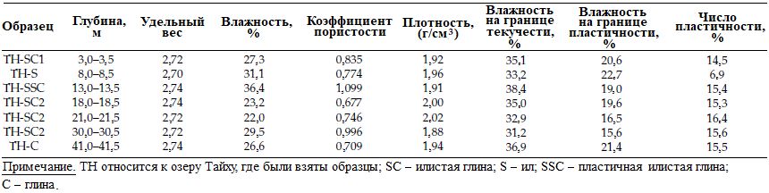 В таблице 1 показаны некоторые основные физические свойства встреченных грунтов.