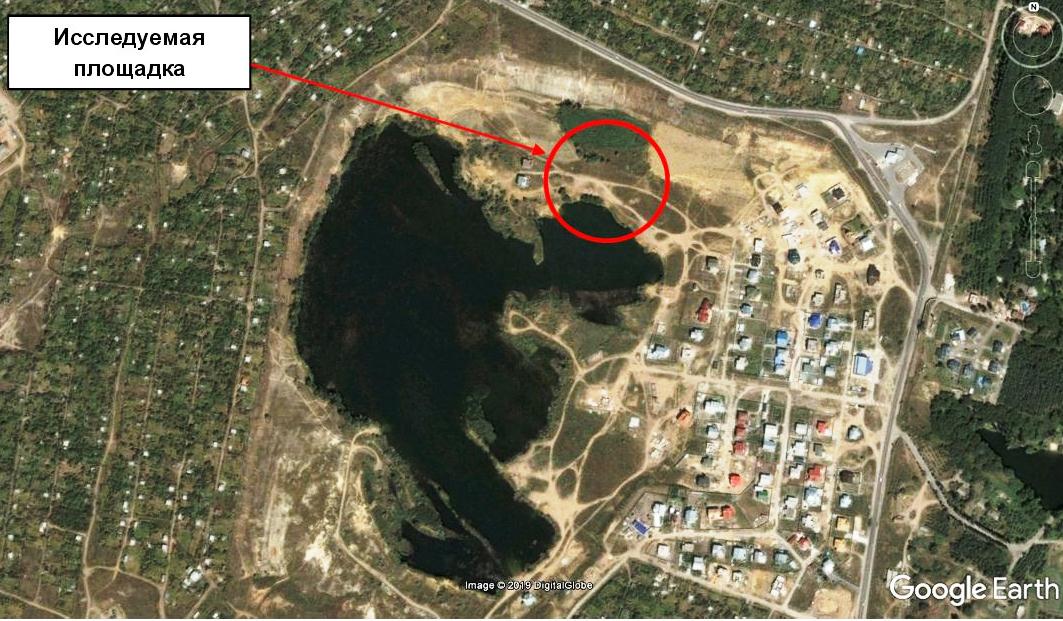 Рис. 1. Аэрофотоснимок участка изысканий (https://www.google.com/earth/)