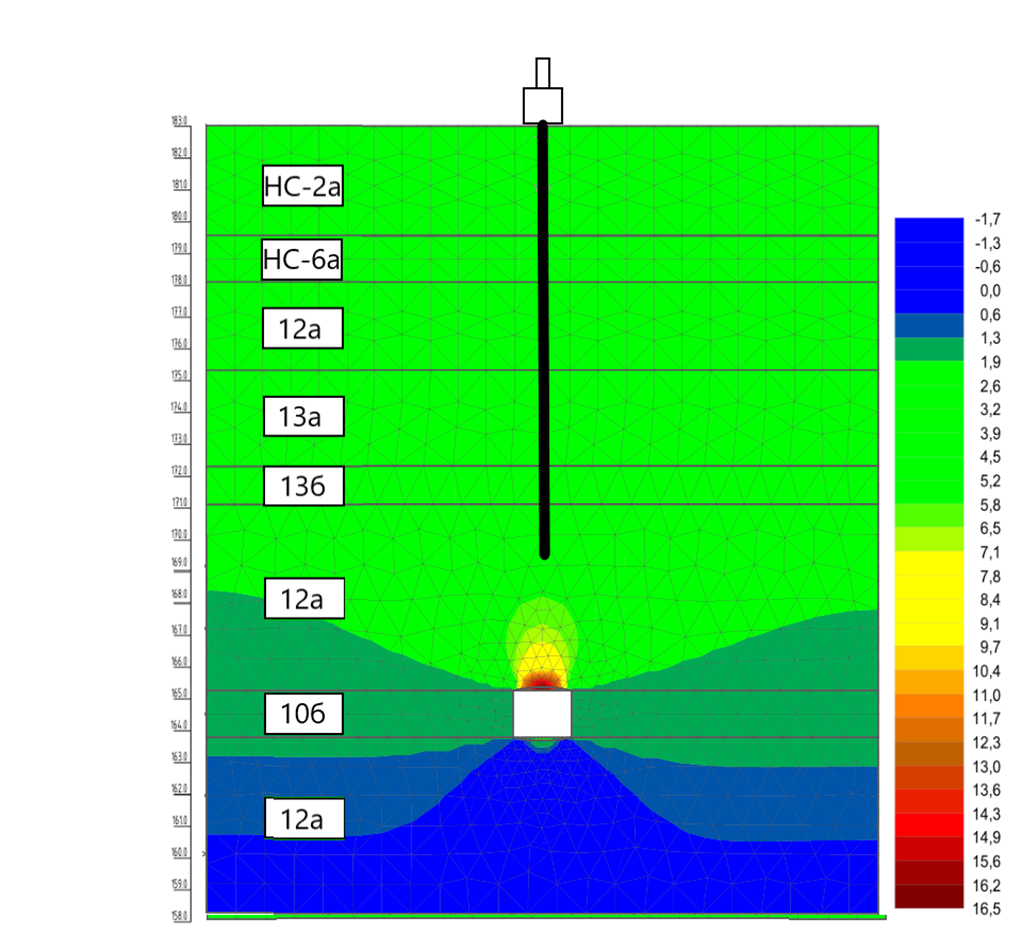 Рис. 5. Расчет деформаций с учетом максимально возможного размера полости 2 м